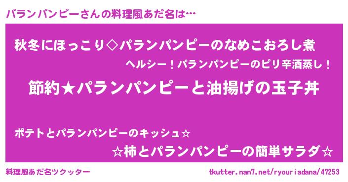 | 男性向けラノベタイトル風あだ名 | 『パランパンピーの憂鬱』 |