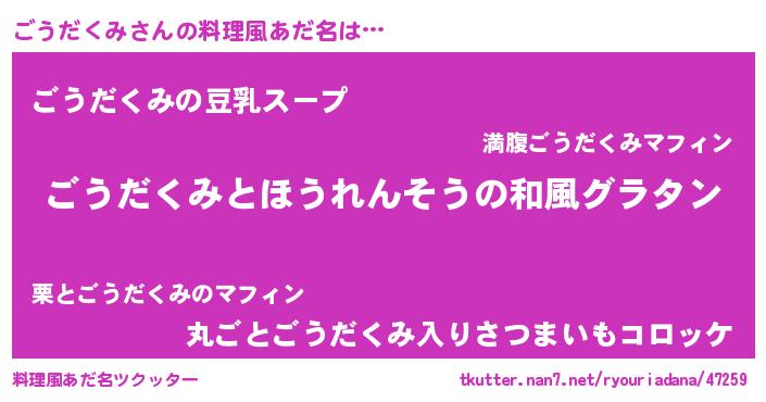 | 胡散臭い通販商品みたいなあだ名 | 『伝統あるサプリメント…その名も「ごうだくみ」』 |