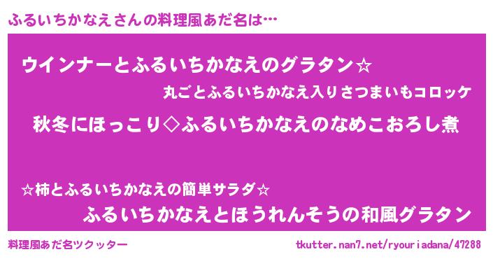 | 男性向けラノベタイトル風あだ名 | 『ふるいちかなえに滅ぼされるだけの簡単なお仕事です』 |