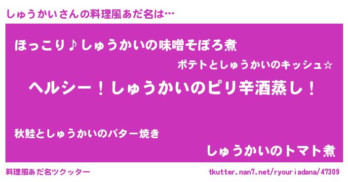 | 意味不明あだ名 | 『自称しゅうかい』『ペロリンしゅうかい』 |