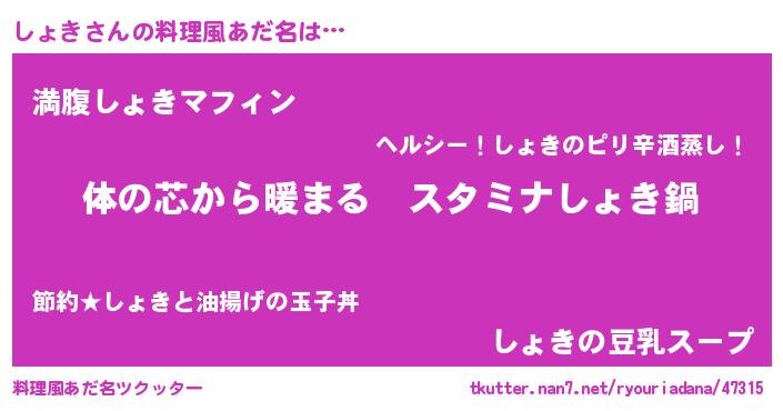 | ヘコむあだ名 | 『牛乳』『しょき(爆)』『しょっ子』 |
