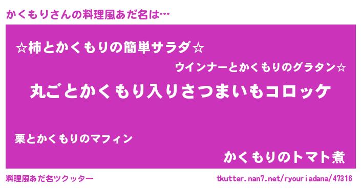 | 意味不明あだ名 | 『住所不定無職かくもり(59歳)』 |