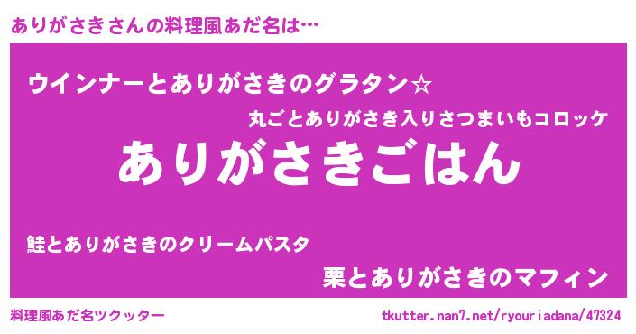 | 男性向けラノベタイトル風あだ名 | 『転生したらありがさきだった件』 |