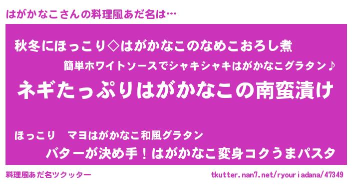| ヘコむあだ名 | 『はがふぇ~』『はがを』『豆乳』 |