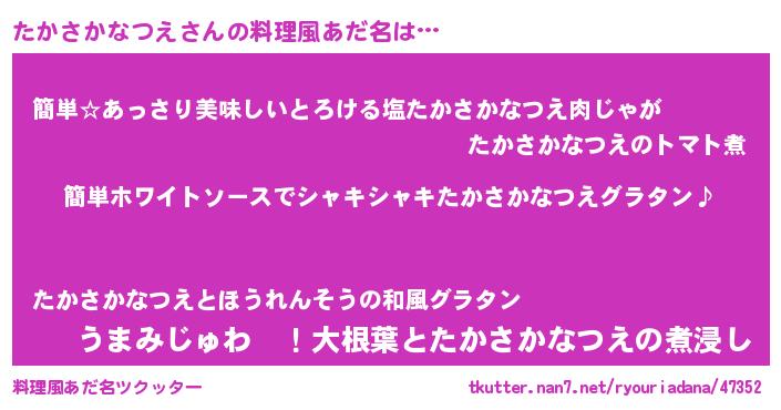 | ヘコむあだ名 | 『たかっ子』『たかさかなつえ(爆)』 |