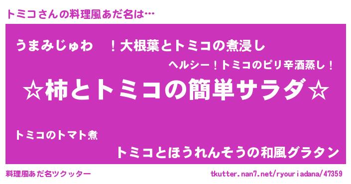 | ヘコむあだ名 | 『豆乳』『トミを』『トミにー』 |