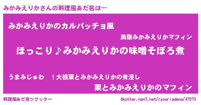 | ヘコむあだ名 | 『みかもー』『みかみえりか(笑)』 |