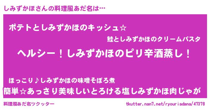| ポケモン風あだ名 | 『シミセウス』『ヒシミズカホ』 |
