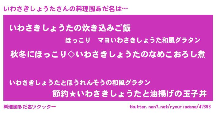 | ヘコむあだ名 | 『いわふぇ~』『いわさきしょうた(苦笑)』 |