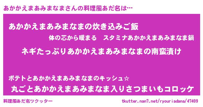 | 恥ずかしいあだ名 | 『プリティーあかかえまあみまなま』 |