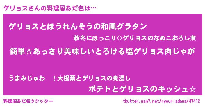 | ヘコむあだ名 | 『ゲリョス(苦笑)』『ゲリっぺ』 |