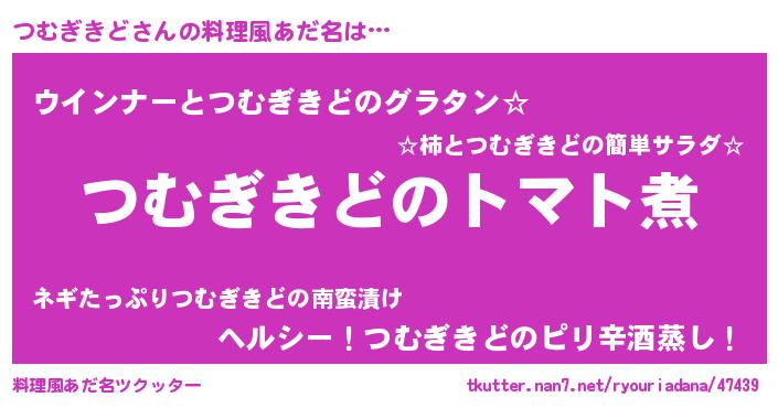| 意味不明あだ名 | 『眠気覚ましガムつむぎきど味』 |