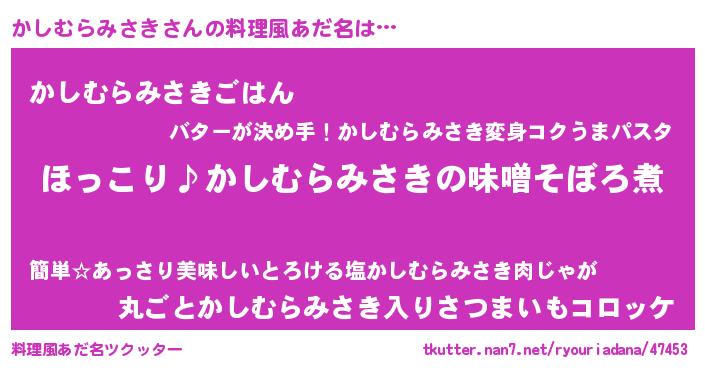 | ヘコむあだ名 | 『かしにー』『かしむらみさき(笑)』 |