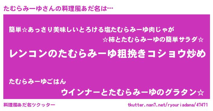 | 女子向けラノベタイトル風あだ名 | 『たむらみーゆなんてお断りですっ。』 |