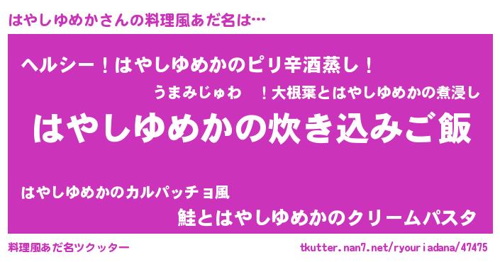 | 意味不明あだ名 | 『自称はやしゆめか』 |