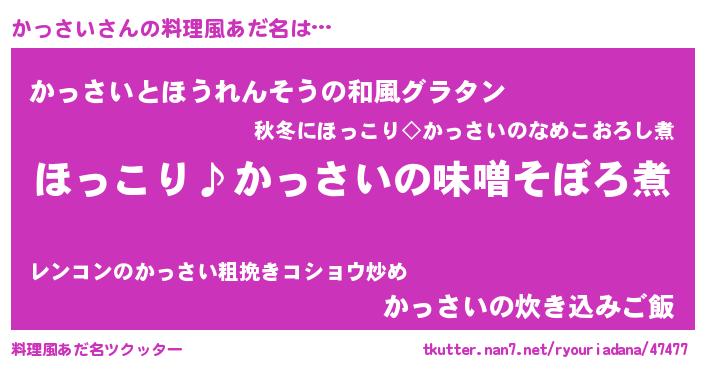 | 意味不明あだ名 | 『ペロリンかっさい』『自称かっさい』 |