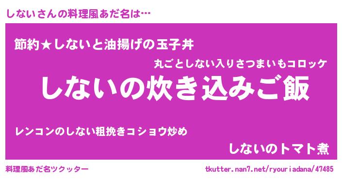 | ヘコむあだ名 | 『しなっふぃ~』『酢こんぶ』 |