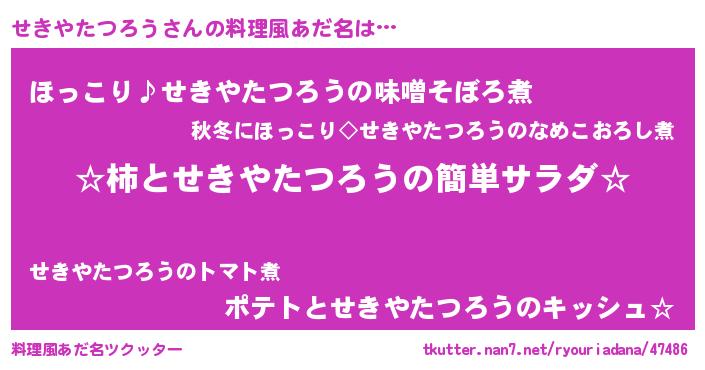 | ヒーロー風カッコイイあだ名 | 『スーパーセキヤタツロウ』 |