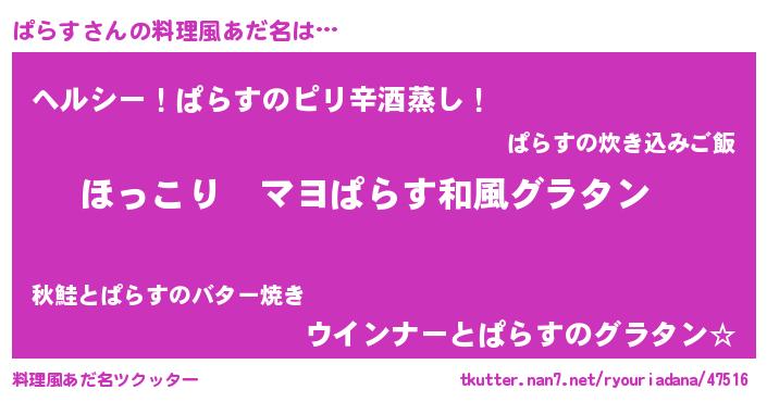 | 意味不明あだ名 | 『住所不定無職ぱらす(71歳)』『自称ぱらす』 |