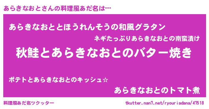 | 胡散臭い通販商品みたいなあだ名 | 『来世でも幸せになれる健康食品…その名も「あらきなおと」』 |