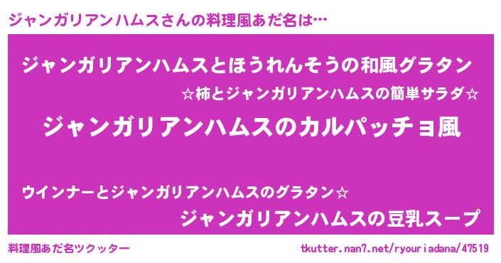 | 意味不明あだ名 | 『住所不定無職ジャンガリアンハムス(41歳)』 |