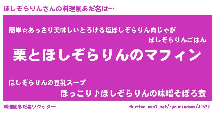 | 胡散臭い通販商品みたいなあだ名 | 『来世でも幸せになれる健康食品…その名も「ほしぞらりん」』 |