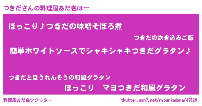 | ヘコむあだ名 | 『つきお』『つきにゅー』『なまこ酢』 |