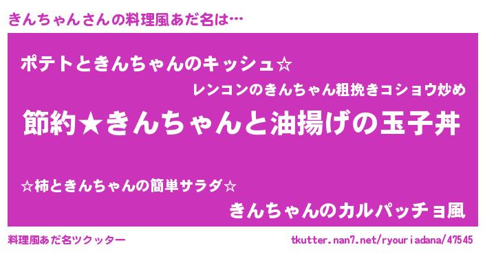 | 男性向けラノベタイトル風あだ名 | 『キンチャンアートオンライン』 |