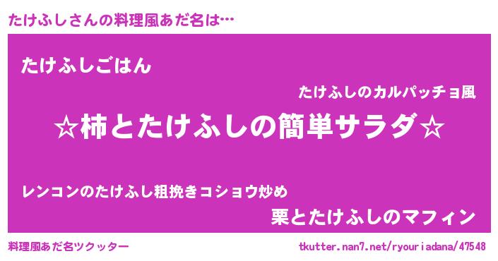 | 男性向けラノベタイトル風あだ名 | 『緋弾のタケフシ』『タケフシスレイヤー』 |