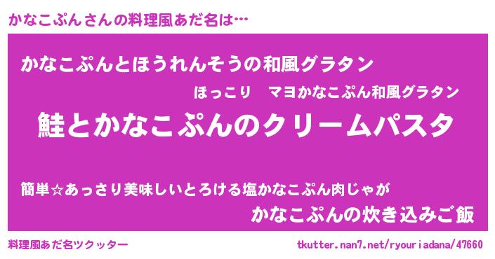 | 男性向けラノベタイトル風あだ名 | 『ノーゲーム・ノーカナコプン』 |