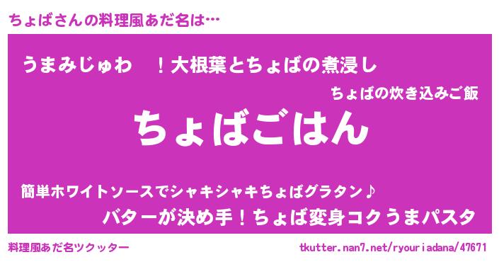 | ヒーロー風カッコイイあだ名 | 『ウルトラちょばマン』『炎刃騎士チョ』 |