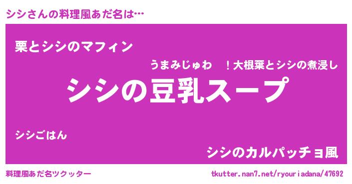 | ヘコむあだ名 | 『シシ太郎』『牛乳』『シシ(笑)』 |
