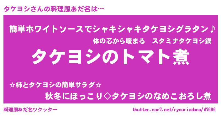 | ピコ太郎風あだ名 | 『タタ太郎』『タケ十郎』『ピタ一郎』 |