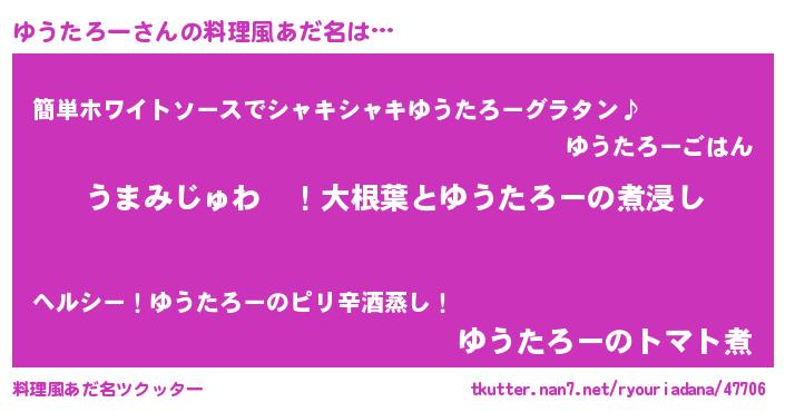 | ポケモン風あだ名 | 『ユウタダネ』『ヒユウタロー』 |