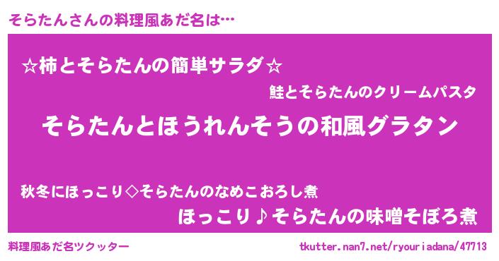 | 胡散臭い通販商品みたいなあだ名 | 『億万長者になれるブレスレット…その名も「そらたん」』 |