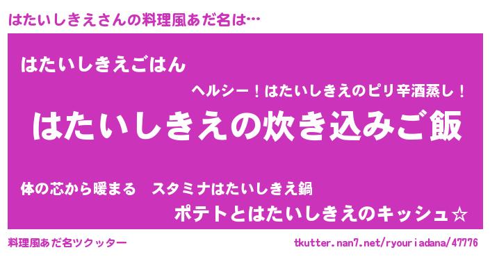 | 欧米人風あだ名 | 『はたいしきえ・ステッグマイヤー』 |