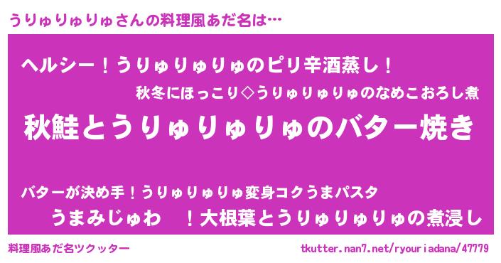 | 胡散臭い通販商品みたいなあだ名 | 『来世でも幸せになれる水素水…その名も「うりゅりゅりゅ」』 |