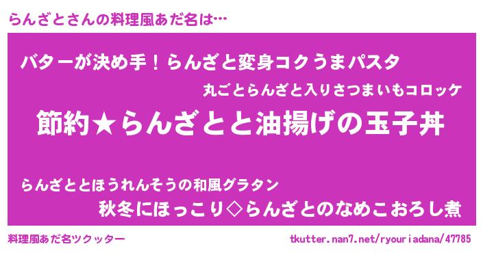 | 意味不明あだ名 | 『ペロリンらんざと』『自称らんざと』 |