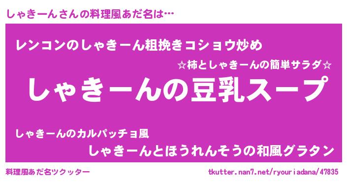 | 男性向けラノベタイトル風あだ名 | 『ダンジョンにしゃきーんを求めるのは間違っているだろうか』 |