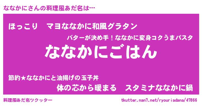 | ヒーロー風カッコイイあだ名 | 『仮面ナナダー』『ウルトラななかにマン』 |