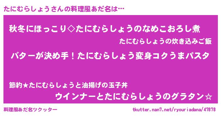 | 男性向けラノベタイトル風あだ名 | 『おまえをオタクにしてやるから、俺をたにむらしょうにしてくれ! 』 |