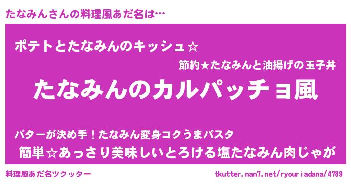 | 自動車の名前っぽいあだ名 | 『タウディ』『タルトナパン』『タンR』 |