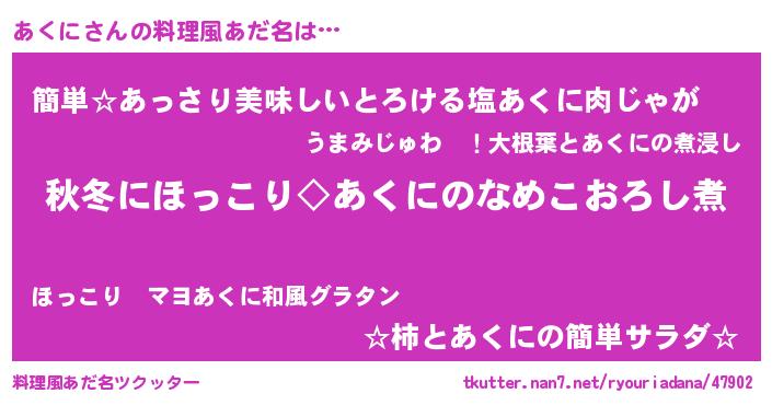 | ヘコむあだ名 | 『あくに(笑)』『牛乳』『あくふぇ~』 |