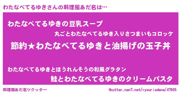 | ポケモン風あだ名 | 『ワタチュウ』『ヒワタナベテルユキ』 |