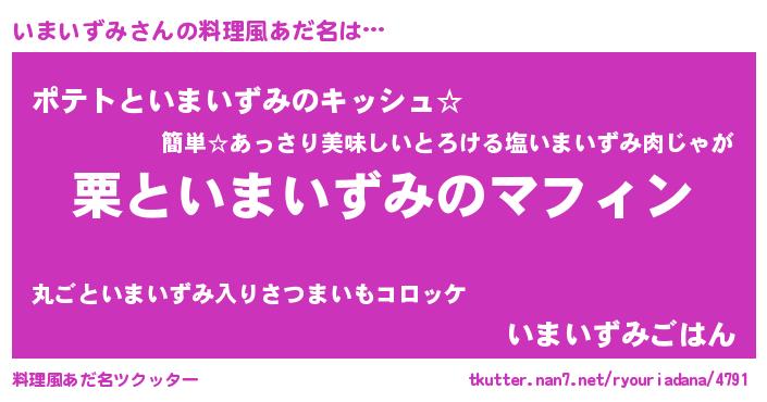 | ポケモン風あだ名 | 『イマゴンZ』『ヒイマイズミ』 |