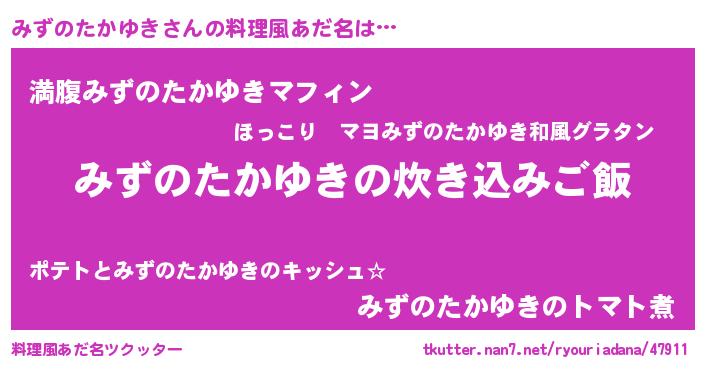 | ヘコむあだ名 | 『みずのたかゆき(震え声)』『みずっちょ』 |