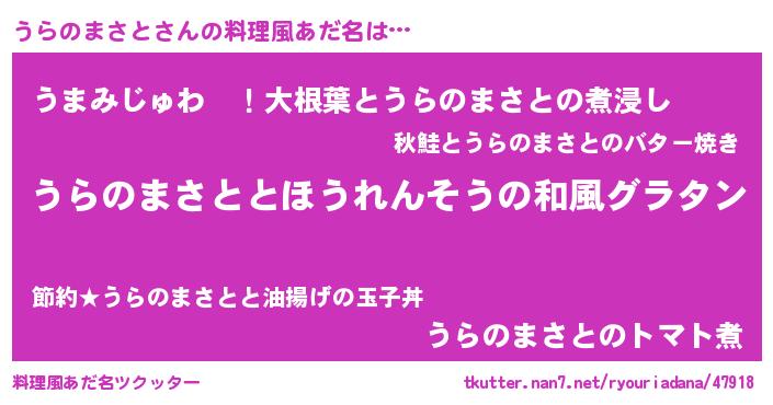 | 胡散臭い通販商品みたいなあだ名 | 『運命の人と巡り会える高級そうな皿…その名も「うらのまさと」』 |