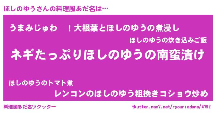 | ファンタジー風あだ名 | 『ホシフェル』『エターナルホシノユウー』 |