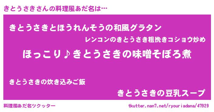 | 女子向けラノベタイトル風あだ名 | 『(仮)きとうさきのやんごとなき事情』 |