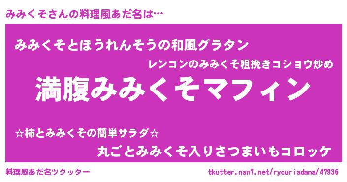 | 男性向けラノベタイトル風あだ名 | 『みみくそという概念が存在しない退屈な世界 』 |